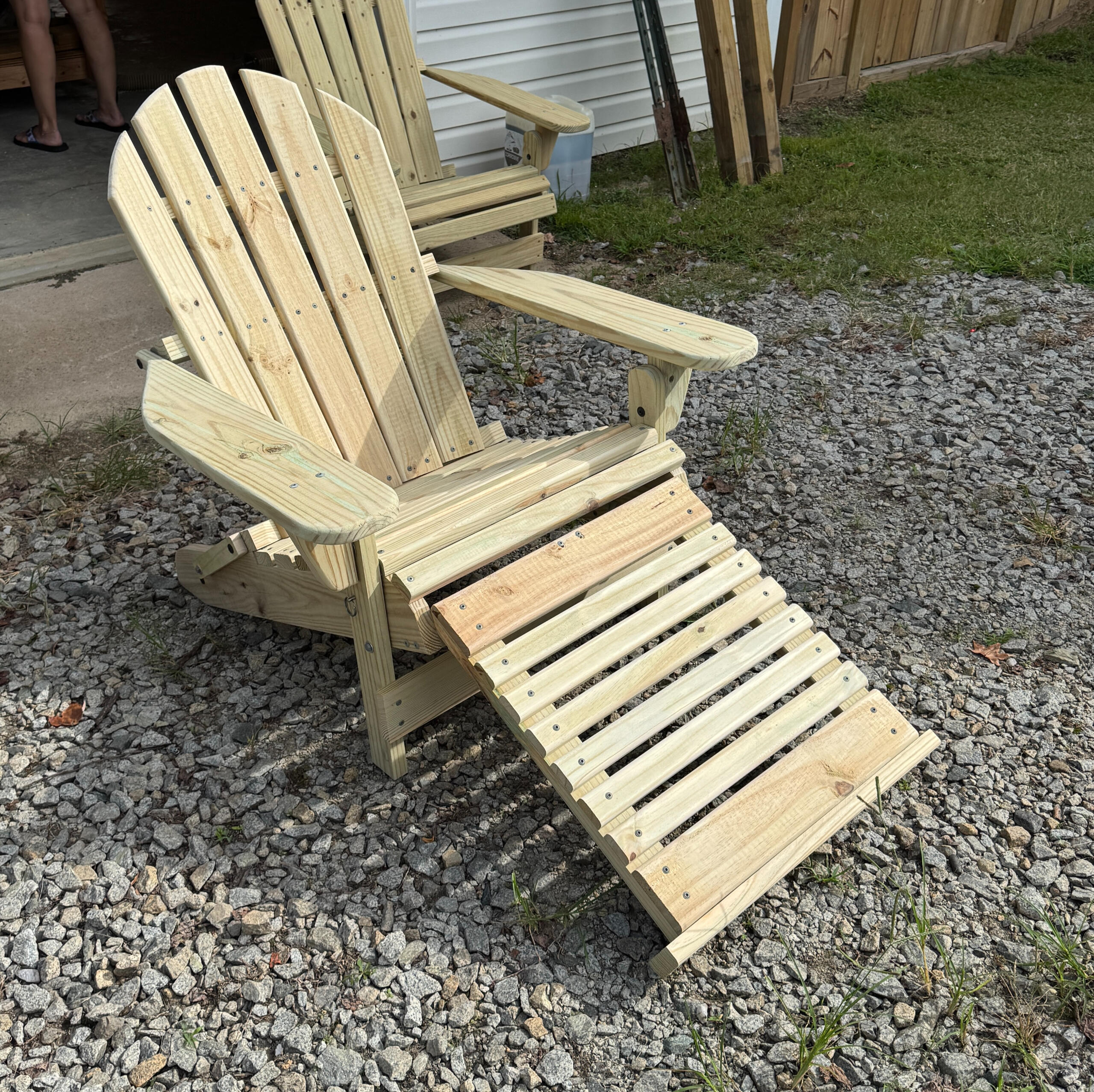 We have been making quality Adirondack chairs and porch swings for 12 years right here in Fuquay Varina, NC. All of our furniture is made from long lasting treated lumber and can be finished in your favorite color after about a month of drying.Much better than plastic! Don't be fooled by the alure of long lasting plastiwood. The recycled plastic used in other chairs fades within years, warps in hot weather, and starts deteriorating within a few seasons leaving microplastics all over your yard, clothes, and skin.Real wood is the only way to go!